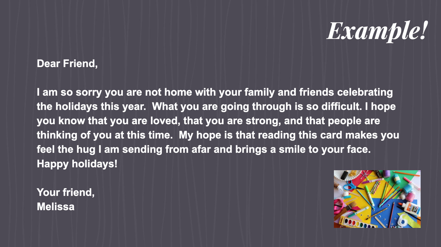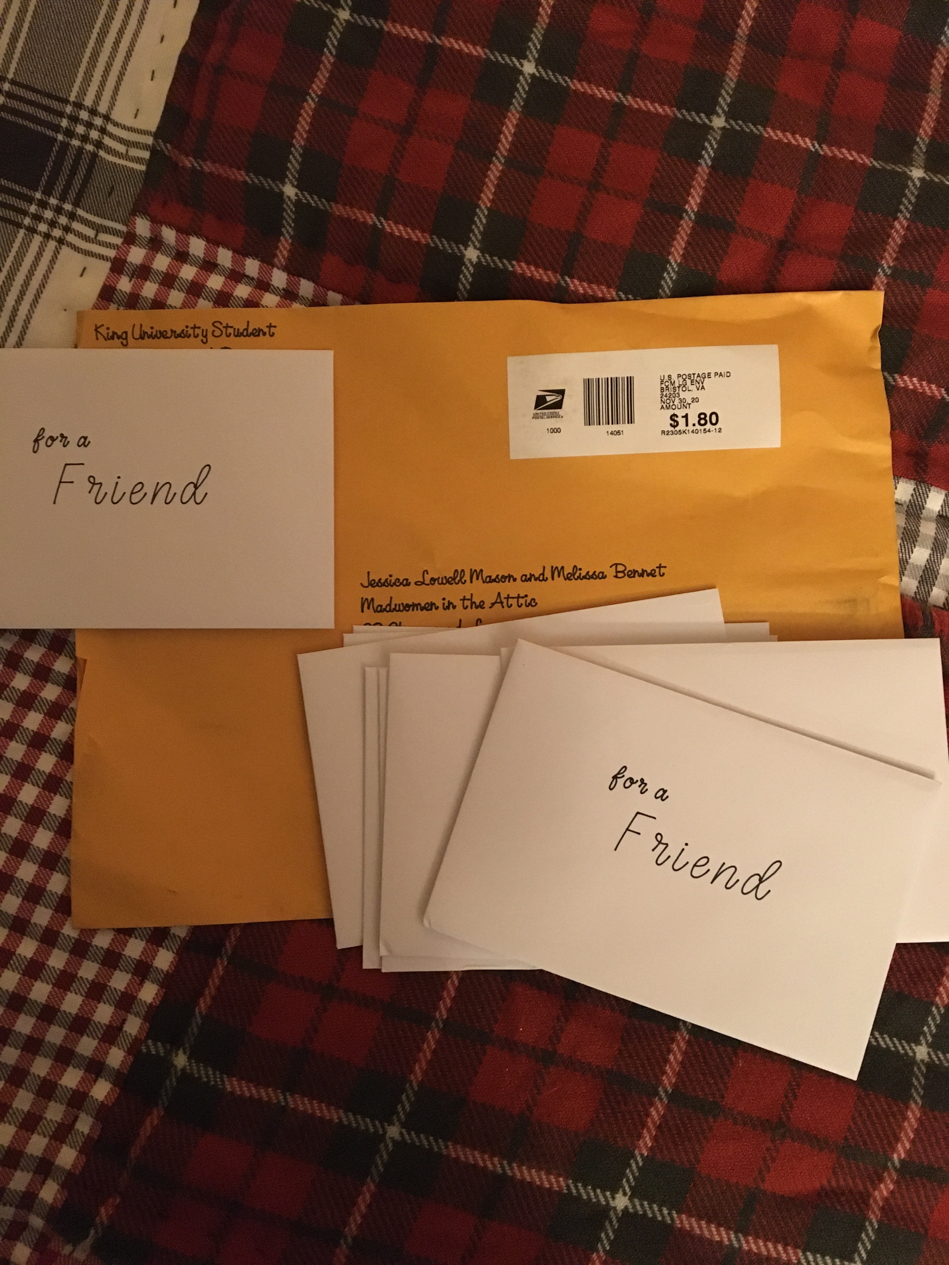 “Our English honor society participated in the December Letters Project for the first time this year. It was the perfect project during Covid, and also the perfect way to spread a little light and joy with minimal cost and minimal time investment. We plan on growing this project in our school and in other schools in our region, and we also plan to reach out to invite other honor societies in social work and criminal justice. Thank you for the fantastic idea!”