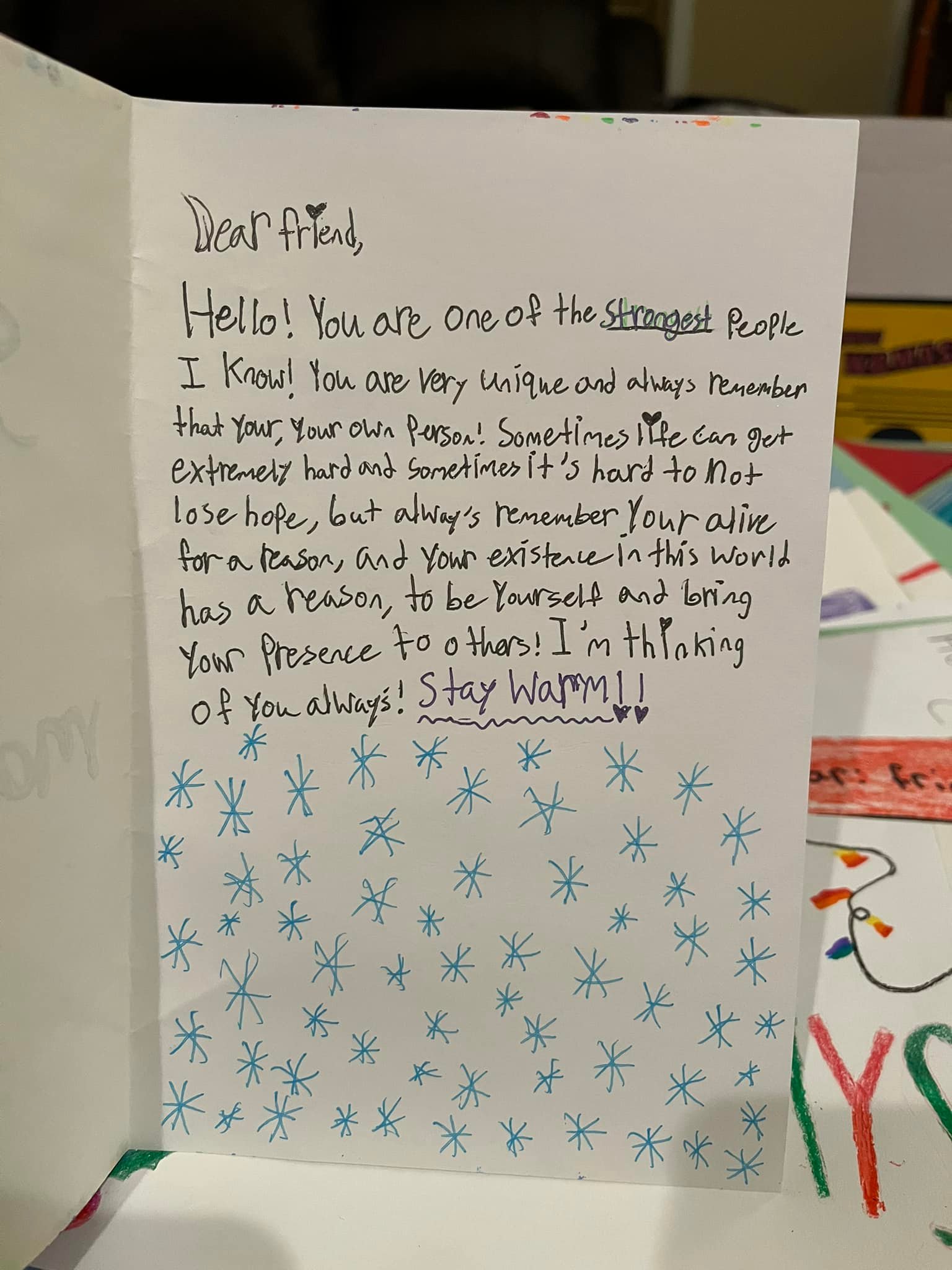 Last year, in 2021, we delivered over 400 heartfelt cards to our friends at the Buffalo Psychiatric Center and Western New York Children’s Psychiatric Center. Local schools, churches, and organizations joined in the project to bring warmth, fellowship, and support to our friends in psychiatric hospitals. Other organizations, outside of our local area, have participated in the past, including organizations in Nova Scotia, Canada and across Australia! Last year, our friends at Hands Across Long Island, in New York, participated in the project through their Creative Connections Campaign.
