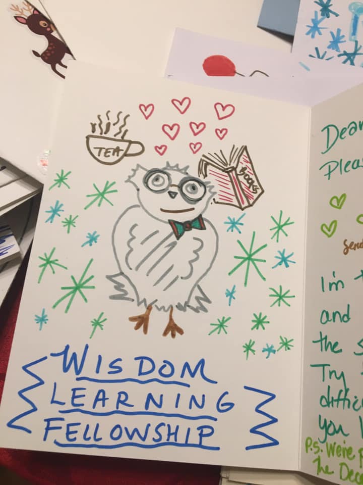 The project relies on each OWL to make a small batch of cards for the project. A little goes a long way, if we come together to help. We will gather cards for our friends until our December 18th deadline. We know these cards mean a lot, both symbolically and in the hearts of those who accept and receive them. If you are able, please be an owl this year as we work hard for another successful solstice wherein we inundate our local psych hospitals with love for those who are inside them!