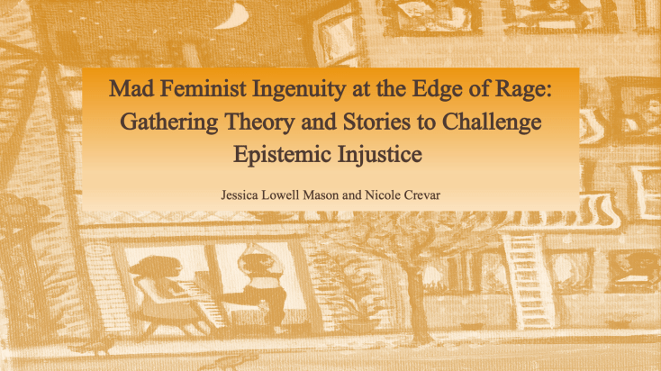 Recently, Jessica Lowell Mason and Nicole Crevar were presenters at the National Women’s Studies Association’s annual conference in Minneapolis, Minnesota. The conference’s theme was “killing rage: Resistance on the Other Side of Freedom,” inspired by bell hooks’ book, Killing Rage: Ending Racism. As part of a paper session titled (also drawing on hooks’ words), “My focus has always been on the work: Exploring Opportunities for Transformation and Reclamation,” their performance-presentation was titled “Mad Feminist Ingenuity at the Edge of Rage: Gathering Theory and Stories to Challenge Epistemic Injustice.”