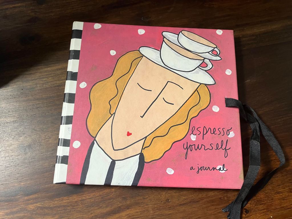 The journal that was gifted to me! It is filled with writing from when I was at my worst from a psychiatric standpoint and a reminder of how a small act of kindness can be life changing.